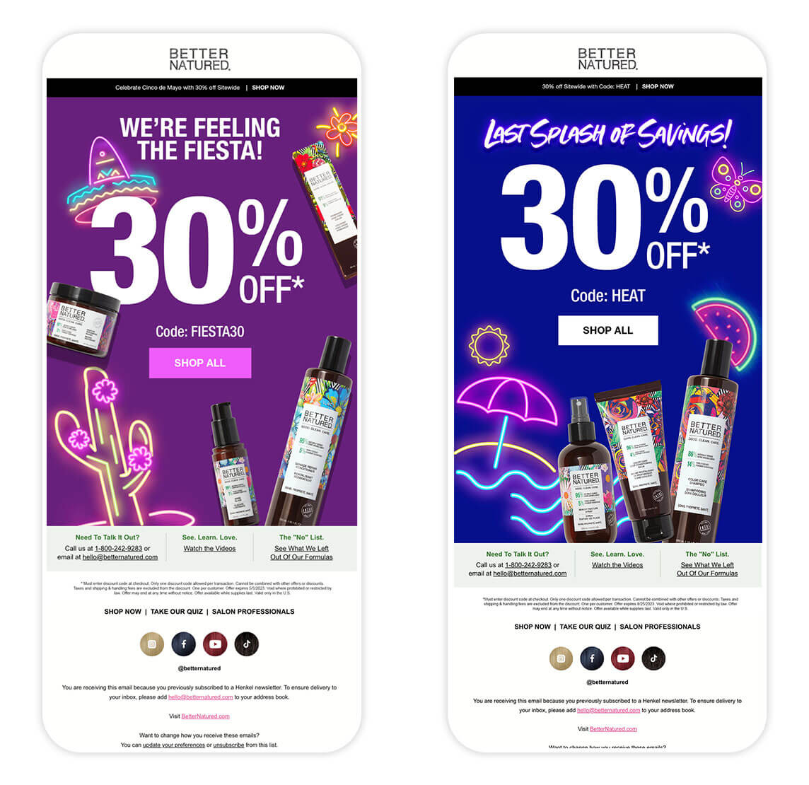 Email strategy was a key component of the client’s design ecosystem. I designed notification emails, welcome sequences, abandonment and post-purchase flows, and weekly promotional campaigns as ongoing support for Henkel.