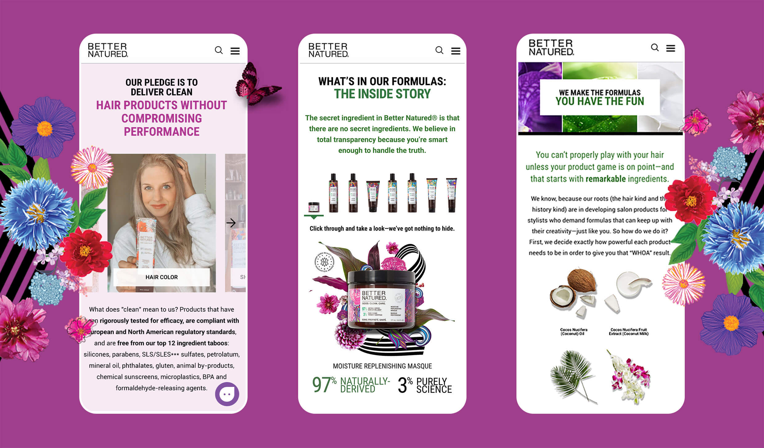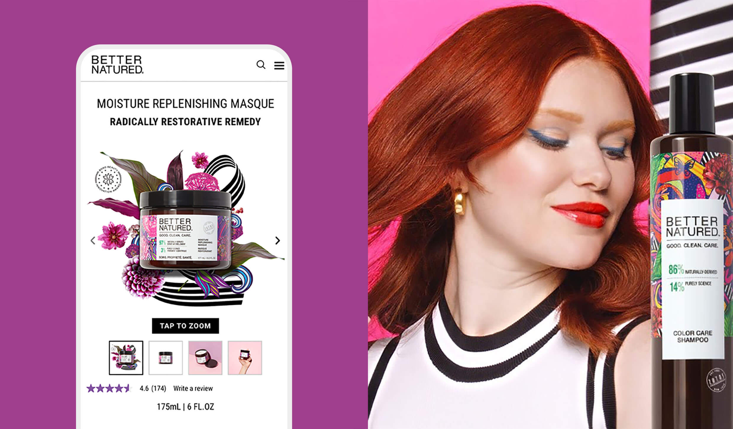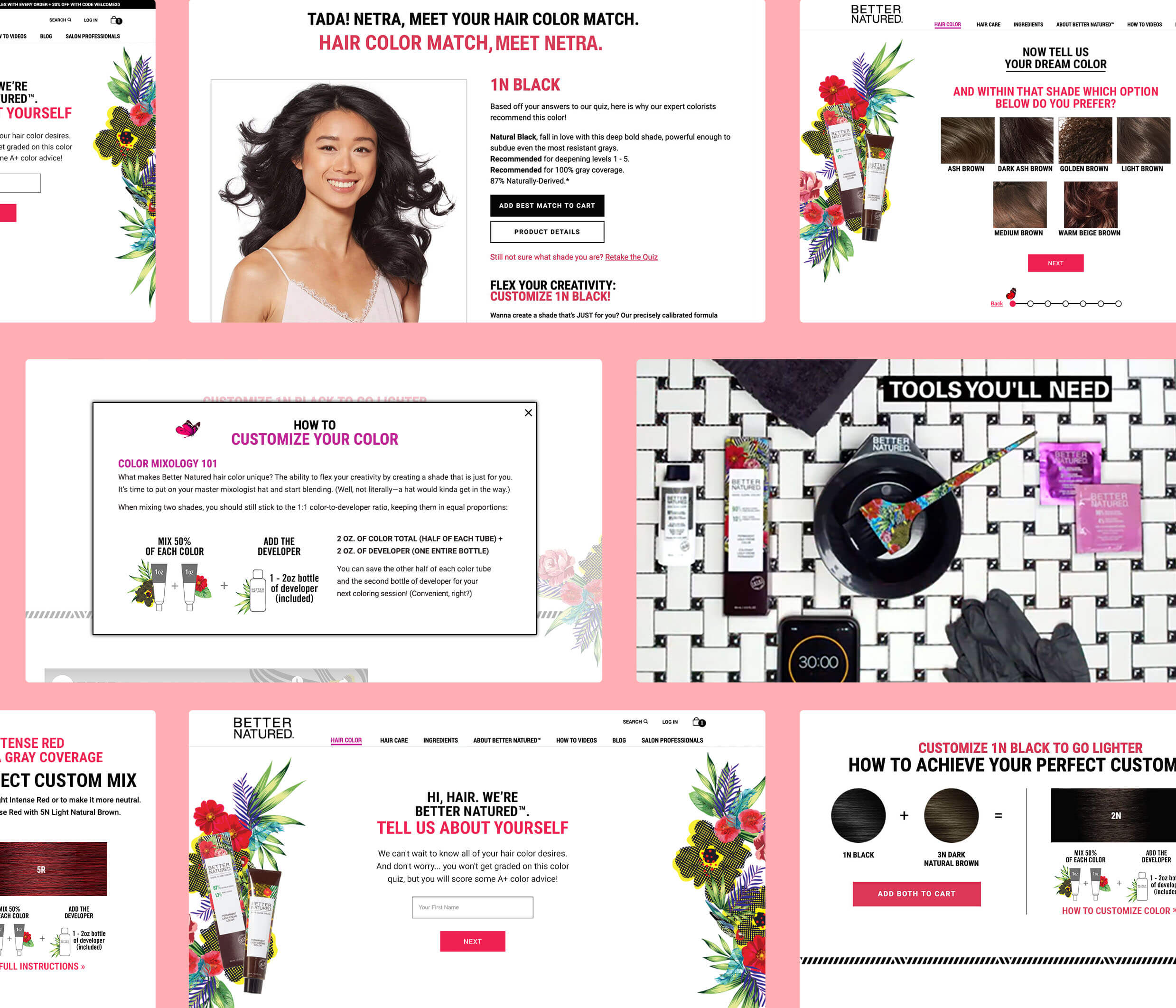 A key goal was to showcase Better Natured’s salon-quality at-home hair color kit as their signature offering while emphasizing its customizable shades.