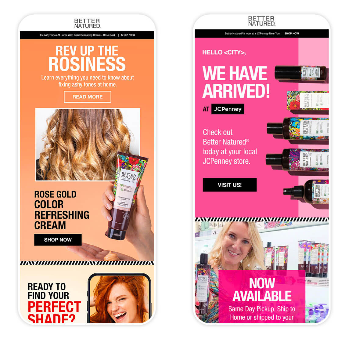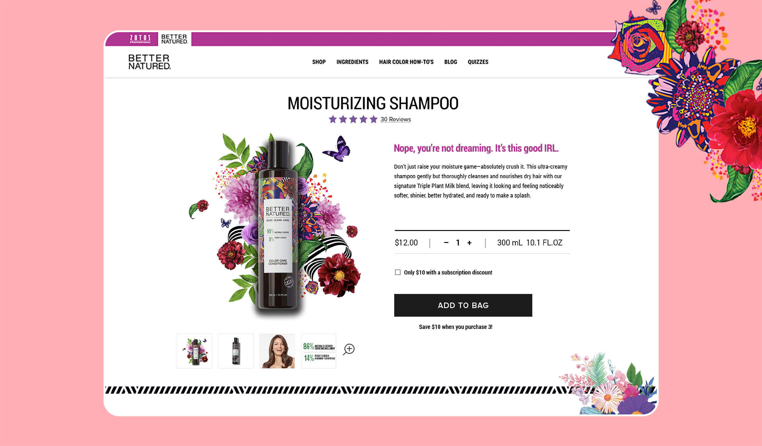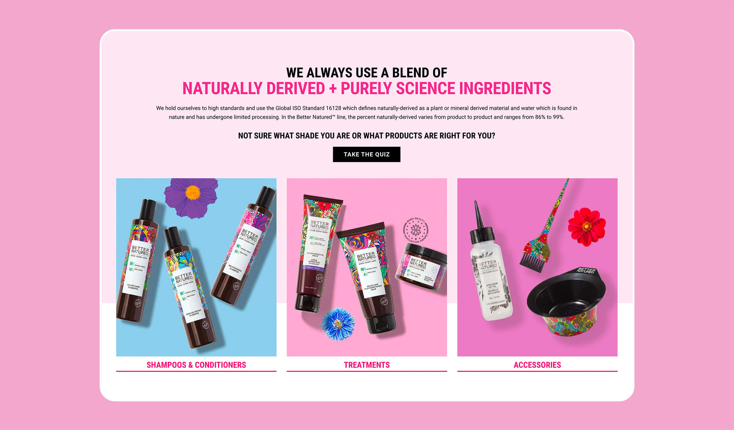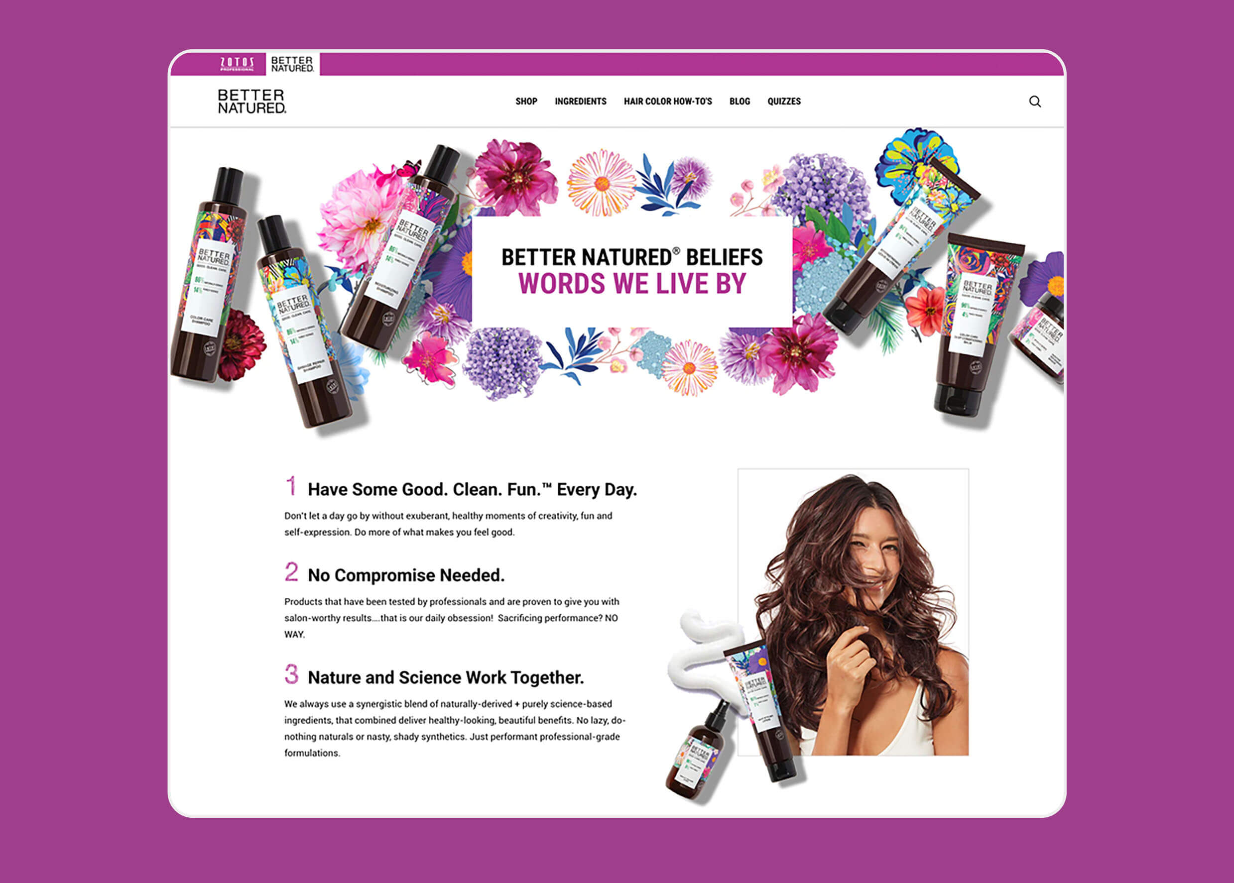 A key goal was to showcase Better Natured’s salon-quality at-home hair color kit as their signature offering while emphasizing its customizable shades.