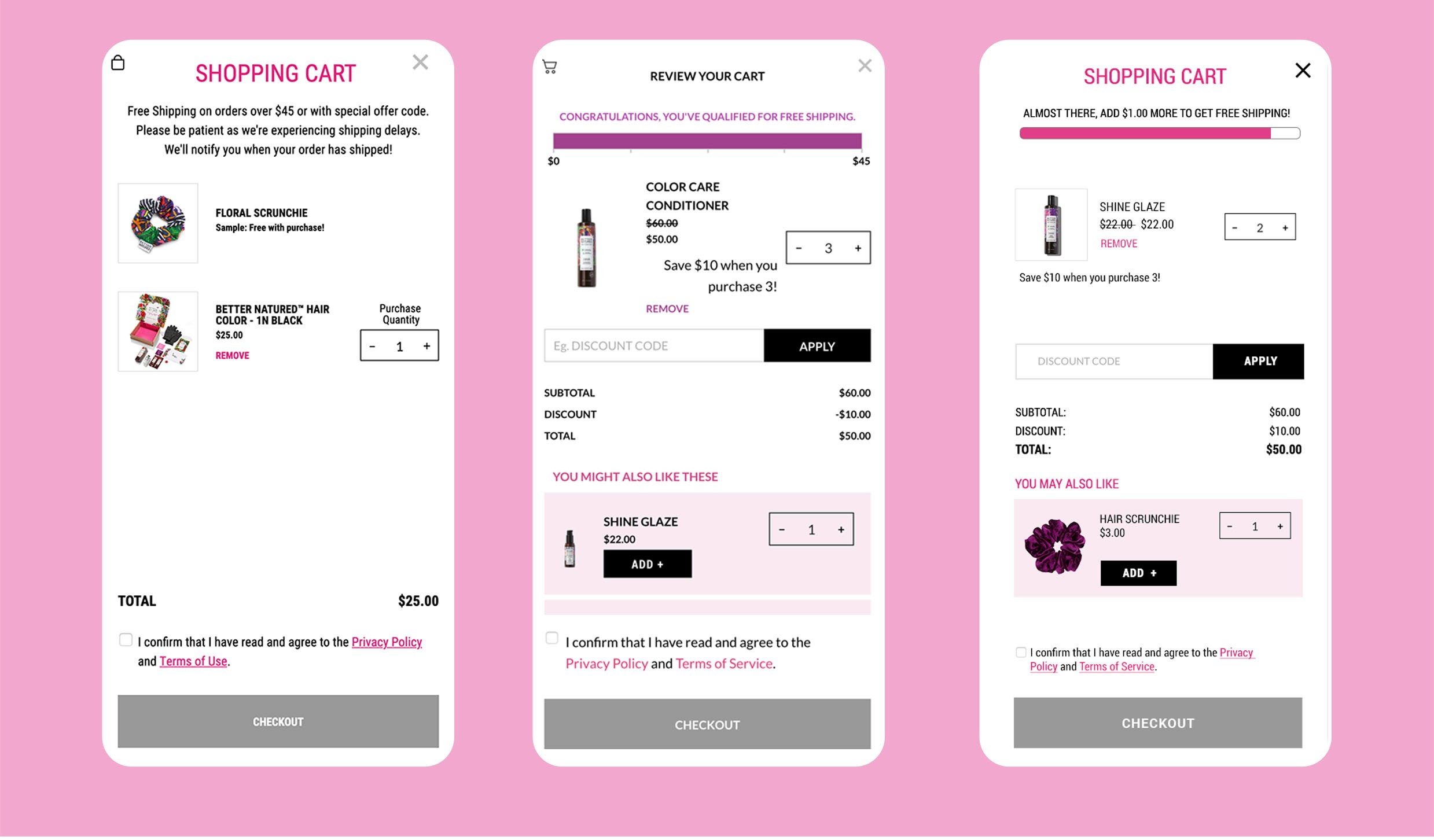 For example, additional improvements were made to the checkout flow, including promotional code calculations, the addition of free sample options, and incentives to reach the free shipping threshold.