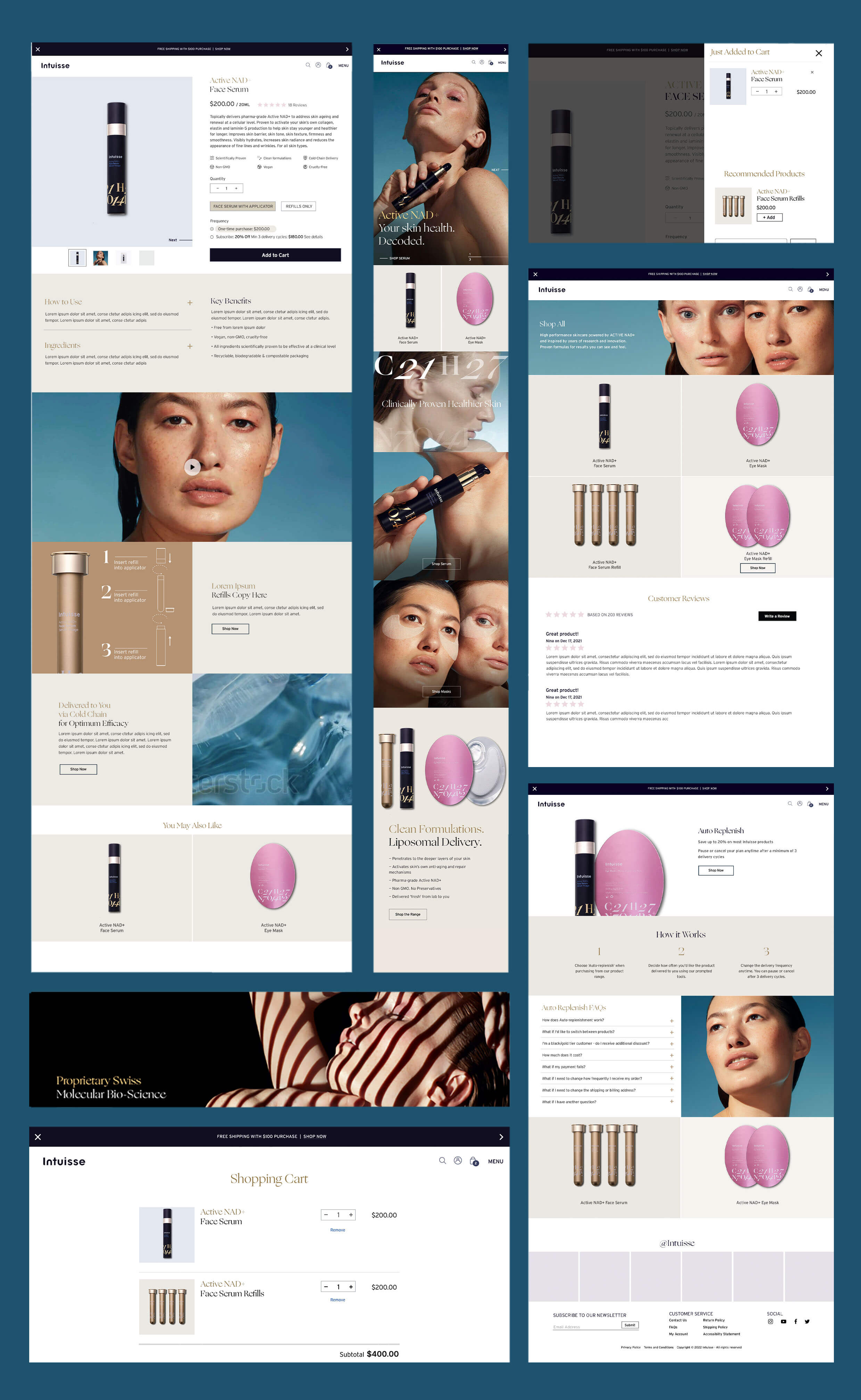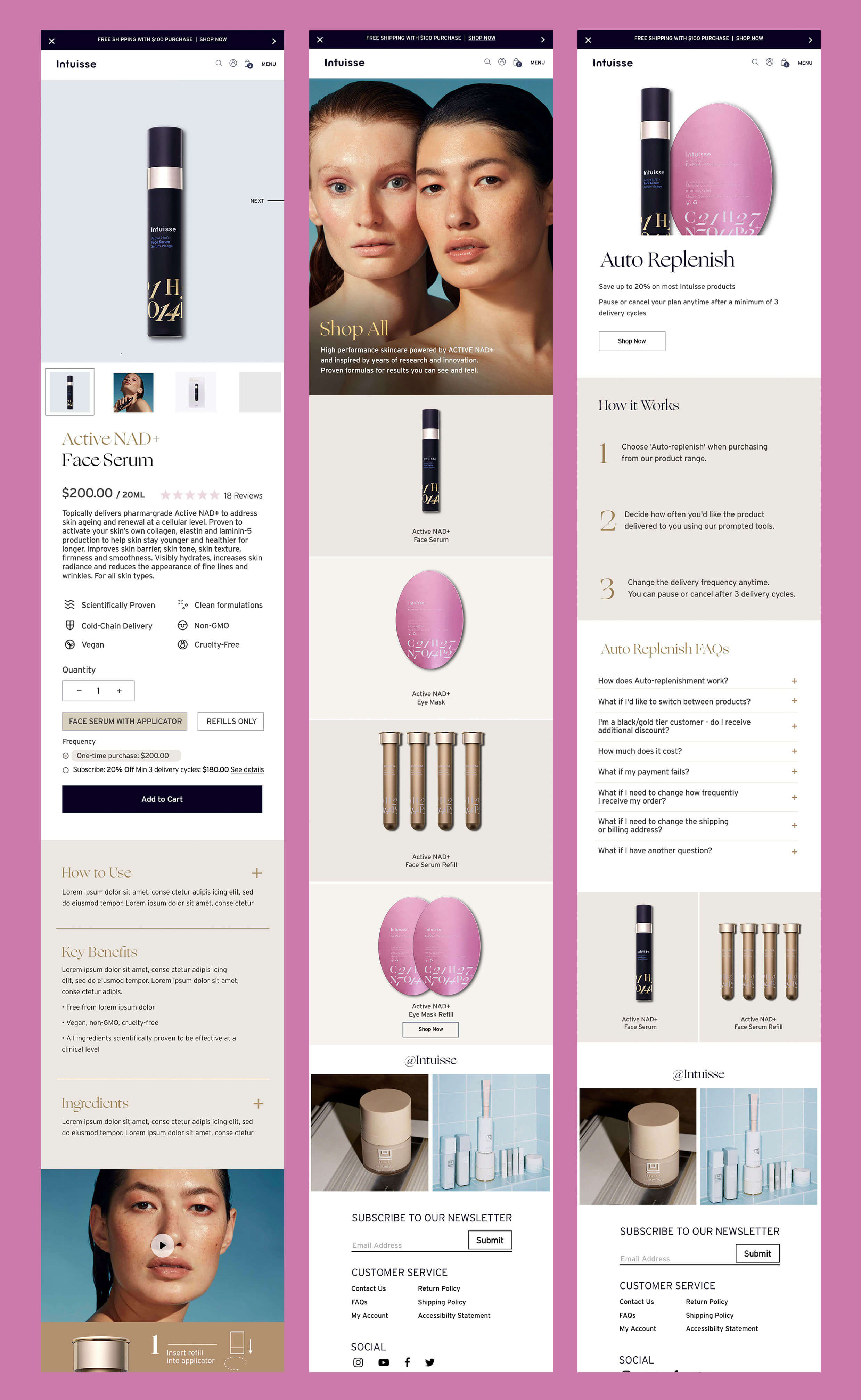 Intuisse's packaging is designed to be eco-conscious, allowing customers to purchase refills instead of entirely new containers. As a result, auto-replenishment of refills became a imortant consideration during the design of their Shopify ecommerce site.
