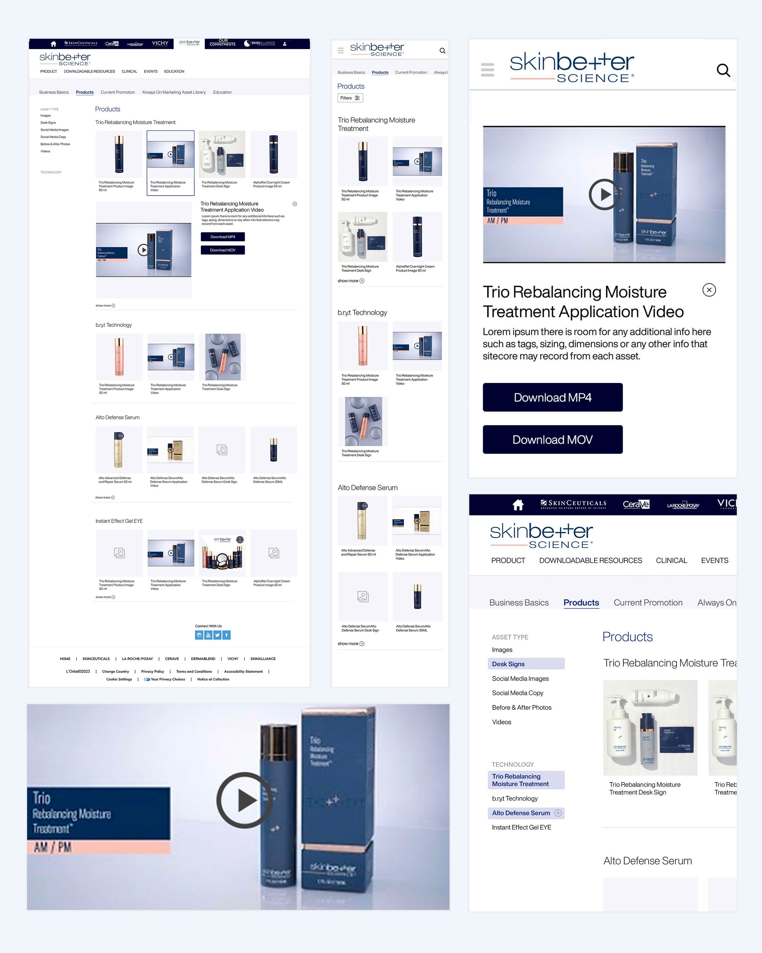 Using skinbetter as an example, this area allowed internal teams or doctors to quickly access and download videos, training guides, before & after images and printables in different formats.