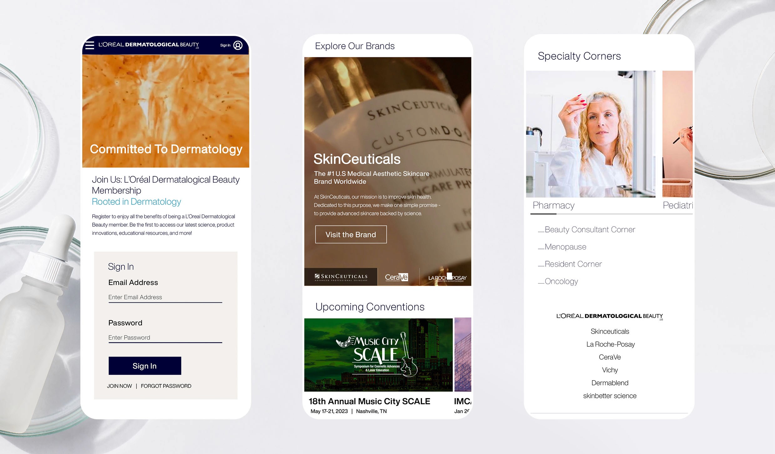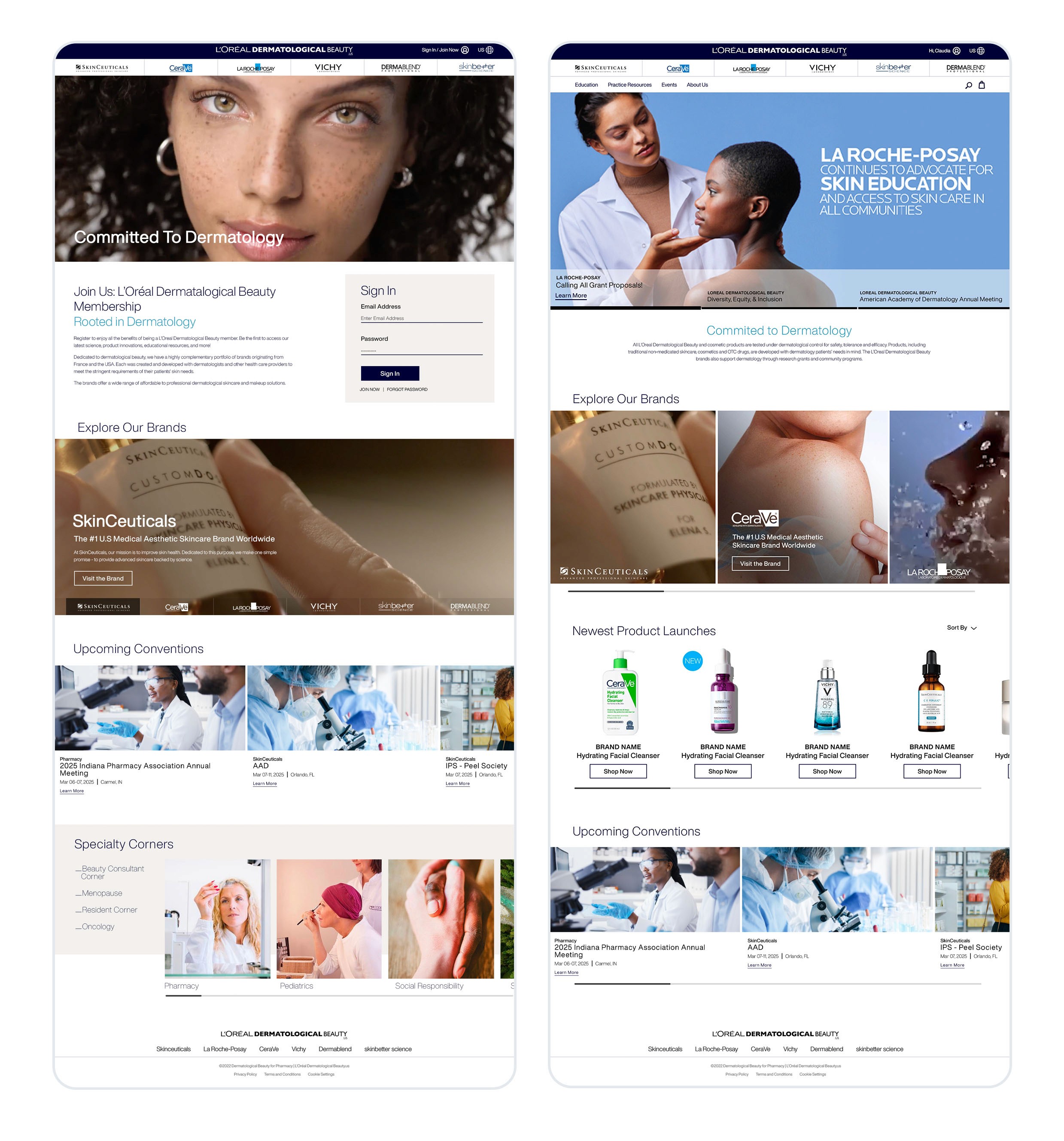 This B2B website was created to help L’Oréal differentiate its brands by bridging the gap between cosmetic skincare and medical dermatology. It has become a central hub for its science-driven brands while also serving as a membership-based platform for medical professionals.