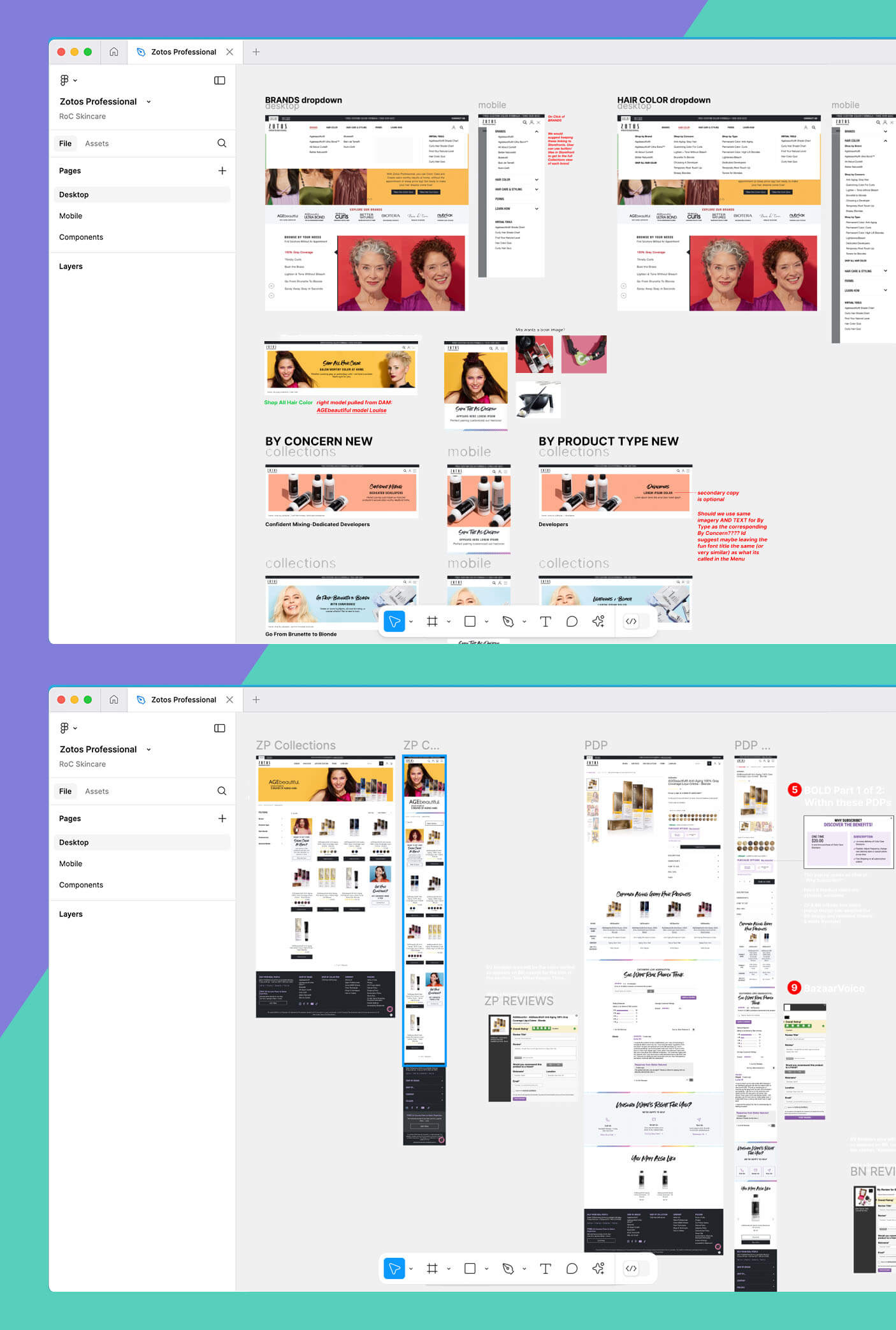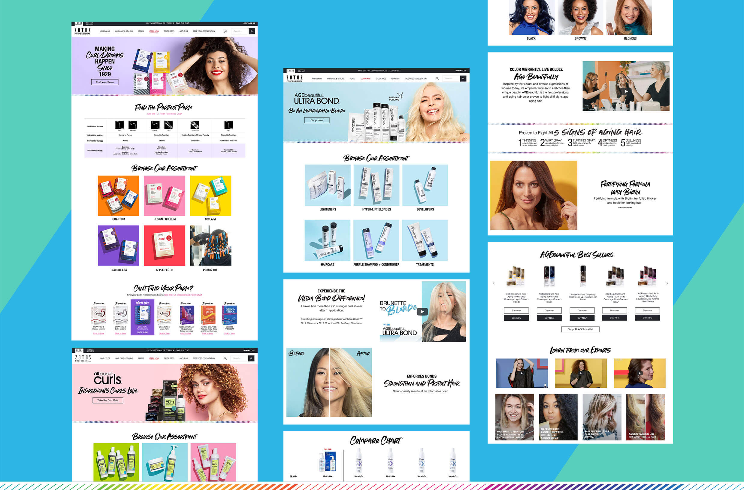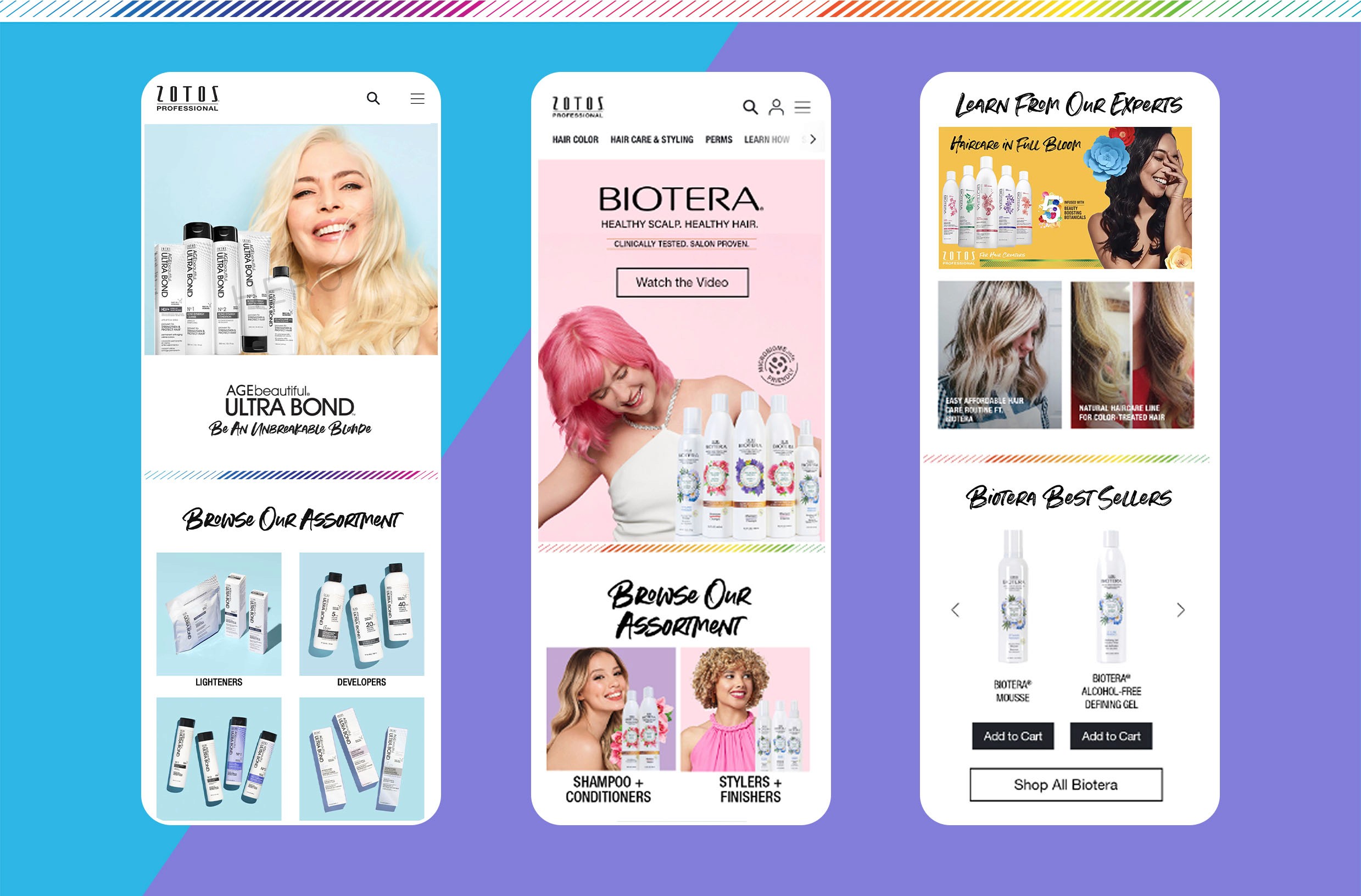 To help with brand visibility, new templates were created to act as storefronts and establish a cohesive connection between the brands, ensuring they felt distinct yet seamlessly tied to the Zotos Professional portfolio.