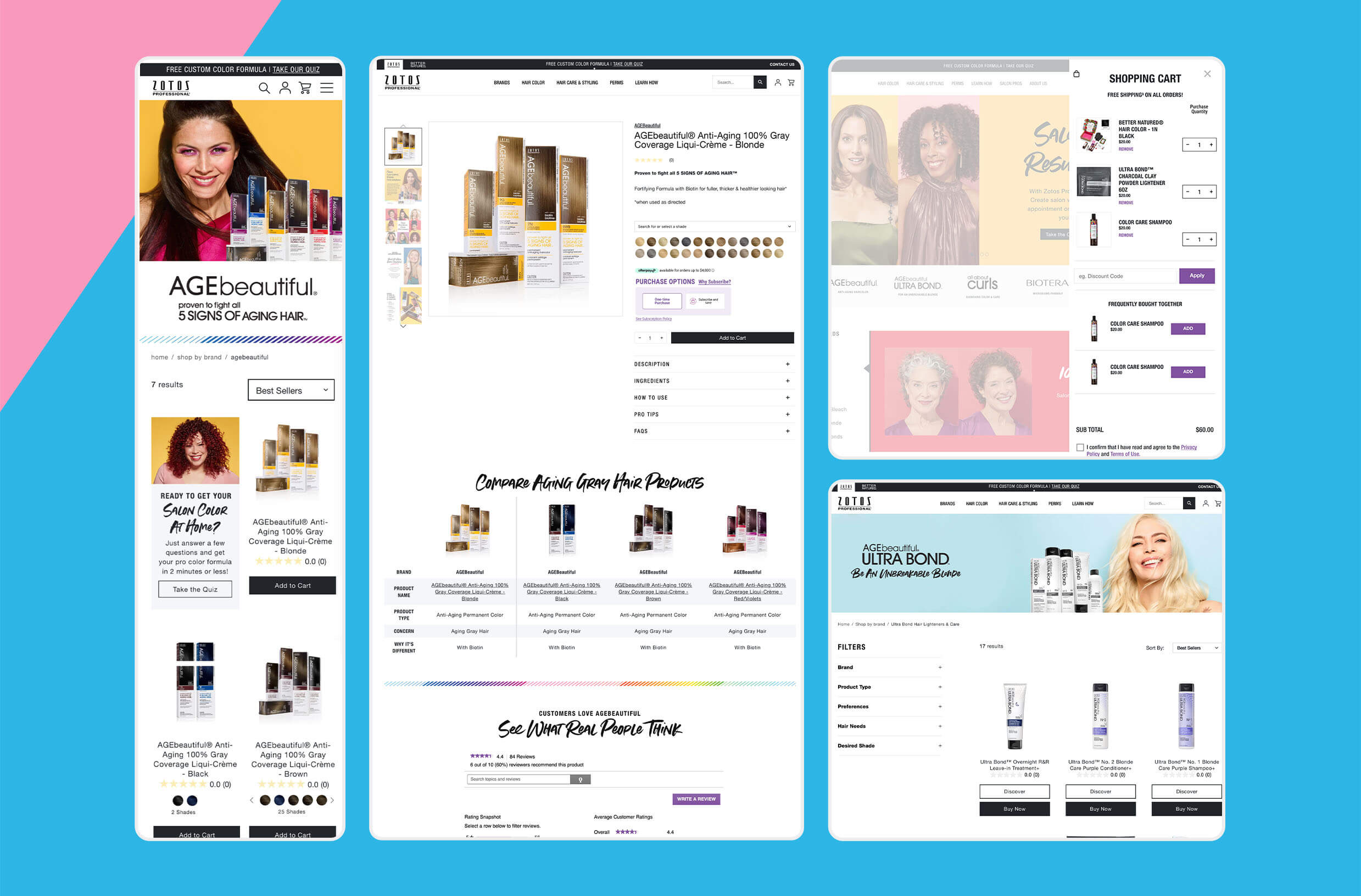 The goal was to transition Zotos Professional’s static WordPress site to Shopify while creating a dynamic eCommerce experience for their product lines like AGEbeautiful, All About Curls, and Biotera.